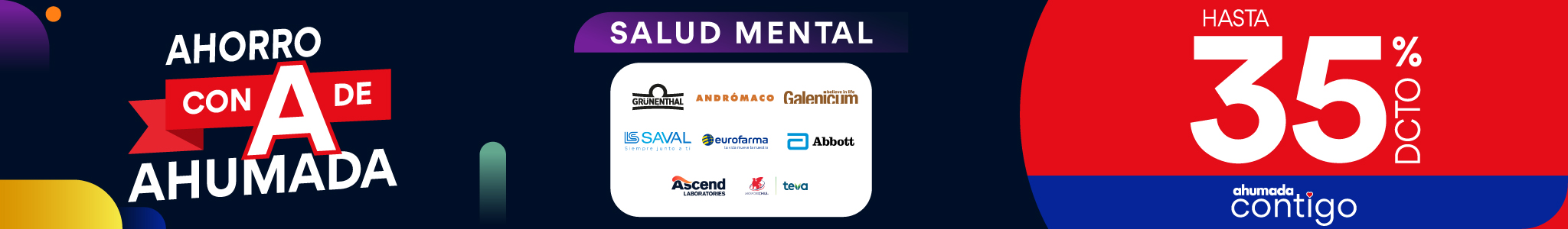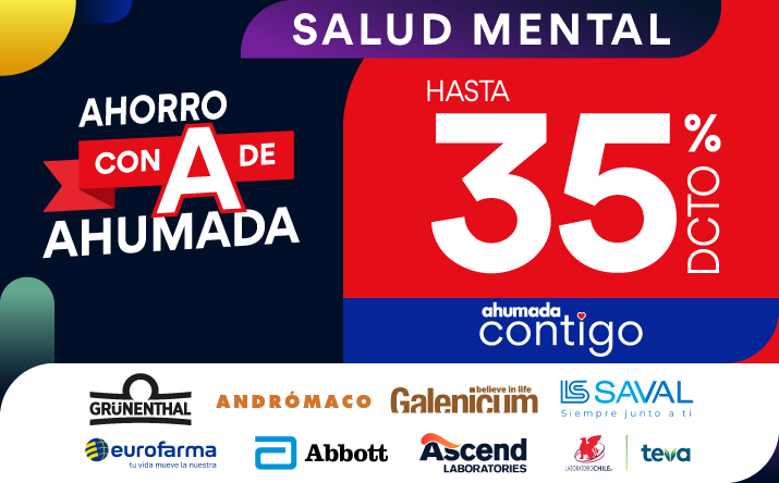 Hasta 35% de descuento en la compra de productos seleccionados de la categoría Salud Mental válido para miembros vigentes del programa Ahumada Contigo de Farmacias Ahumada SpA, por compras realizadas por personas naturales, consumidores finales que registran su compra a través del programa con su cédula de identidad vigente, con cualquier medio de pago los días 30 de diciembre de 2025 y 5 de enero de 2026, ambos días inclusive o hasta agotar el stock de 1.000 unidades por producto seleccionado. Beneficio aplicable a compras realizadas a través del sitio web www.farmaciasahumada.cl y compras presenciales en farmacias de Farmacias Ahumada SpA. Dispensación de medicamentos según normativa sanitaria vigente. NO SE AUTOMEDIQUE. Consulte a su químico farmacéutico. Productos sujetos a reposición de cada local. Beneficios o descuentos no acumulables entre sí ni con otras ofertas, promociones, descuentos, beneficios, programas o convenios. Consulte por términos, condiciones, exclusiones, limitaciones, despachos, productos y su stock en www.farmaciasahumada.cl