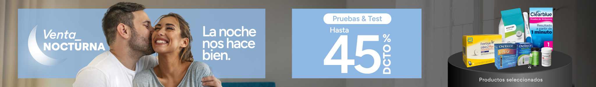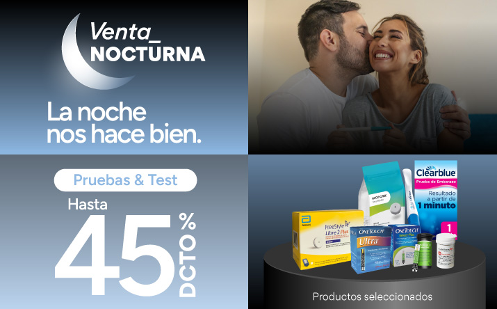 Hasta 45% de descuento en la compra de productos seleccionados de la categoría Pruebas y Test válido para todo público, por compras realizadas por personas naturales, consumidores finales, con cualquier medio de pago desde las 18:00 horas del día 16 de marzo de 2026 hasta las 10:00 horas del día 17 de marzo de 2026 o hasta agotar el stock de 1.000 unidades por producto seleccionado. Beneficio o descuento exclusivo para compras realizadas a través del sitio web www.farmaciasahumada.cl. Descuento no aplica para compra de packs o estuches. Beneficios o descuentos no acumulables entre sí ni con otras ofertas, promociones, programas, convenios y/o descuentos. La venta de productos y/o medicamentos quedarán sujetas a la disponibilidad de stock de cada farmacia. Verifique términos, condiciones y stock en www.farmaciasahumada.cl.