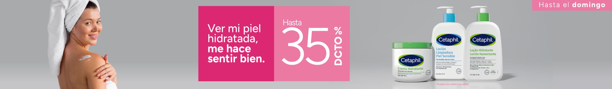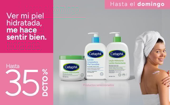 Hasta 35% de descuento en la compra de productos seleccionados de la marca Cetaphil válido para todo público, por compras realizadas con cualquier medio de pago desde el 30 de marzo de 2026 hasta el 05 de abril de 2026, ambos días inclusive o hasta agotar el stock de 1000 unidades por producto seleccionado. Descuento aplicable para compras presenciales realizadas en farmacias de Farmacias Ahumada SpA y en compras realizadas en el sitio web www.farmaciasahumada.cl. Productos sujetos a reposición de cada local. Descuentos no acumulables entre sí ni con otras ofertas, promociones, descuentos, beneficios, programas o convenios. Consulte por términos, condiciones, exclusiones, limitaciones, despachos, productos y su stock en www.farmaciasahumada.cl.