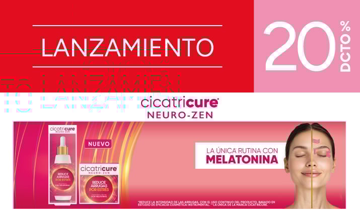 20% de descuento en la compra de productos seleccionados de la marca Cicatricure válido para todo público. Beneficio o descuento exclusivo para compras presenciales realizadas en farmacias de Farmacias Ahumada SpA y para compras realizadas a través del sitio web www.farmaciasahumada.cl.  Beneficios válidos con cualquier medio de pago desde el 23 de febrero de 2026 hasta el 8 de marzo de 2026, ambos días inclusive o hasta agotar el stock de 1000 unidades por producto seleccionado. Beneficio no aplica para comprar packs o estuches de productos. Productos sujetos a reposición de cada local. Beneficios o descuentos no acumulables entre sí ni con otras ofertas, promociones, descuentos, beneficios, programas o convenios. Consulte por términos, condiciones, exclusiones, limitaciones, despachos, productos y su stock en www.farmaciasahumada.cl.