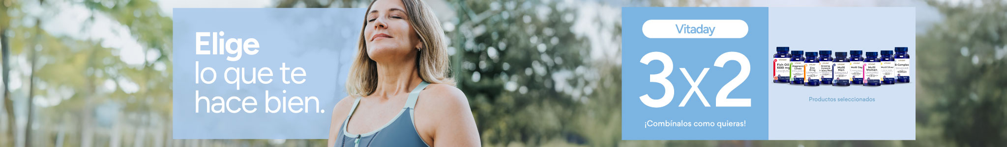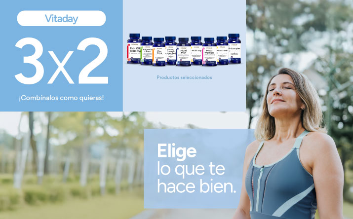 tres unidades por el precio de dos de igual o menor valor en productos seleccionados de la marca Vitaaday válido para todo público, por compras realizadas por personas naturales, consumidores finales, con cualquier medio de pago desde el 09 de febrero de 2025 hasta el 15 d febrero de 2026, ambos días inclusive o hasta agotar el stock de 1.000 unidades por producto seleccionado. Beneficio aplicable a compras presenciales en farmacias de Farmacias Ahumada SpA y compras realizadas a través del sitio web www.farmaciasahumada.cl. Productos sujetos a reposición de cada local. Beneficios o descuentos no acumulables entre sí ni con otras ofertas, promociones, descuentos, beneficios, programas o convenios. Consulte por términos, condiciones, exclusiones, limitaciones, despachos, productos y su stock en www.farmaciasahumada.cl.