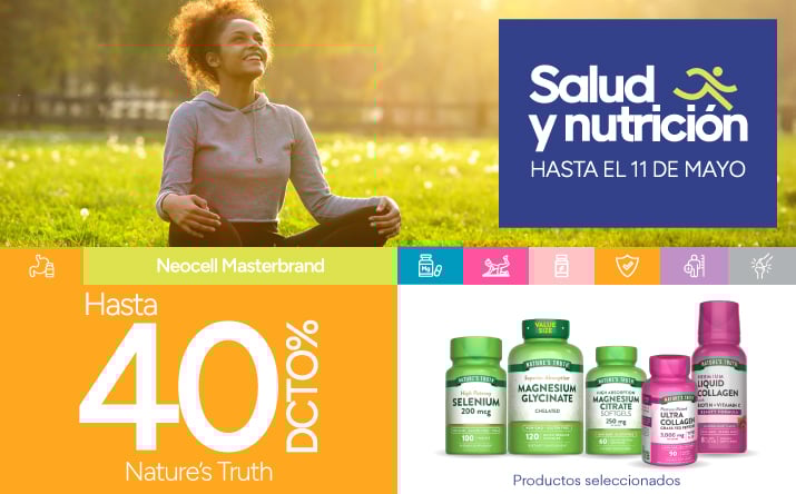 30% de dcto. en la compra de la marca Nature's Truth válido para todo público, por compras realizadas por personas naturales, consumidores finales, con cualquier medio de pago entre los días 28 de abril al 11 de mayo de 2026 y 19 de abril de 2026, ambos días inclusive o hasta agotar el stock de 1.000 unidades por producto seleccionado. Beneficio aplicable a compras realizadas a través del sitio web www.farmaciasahumada.cl y compras presenciales en farmacias de Farmacias Ahumada SpA. Dispensación de medicamento según normativa sanitaria vigente. NO SE AUTOMEDIQUE. Consulte a su químico farmacéutico. Productos sujetos a reposición de cada local. Beneficios o descuentos no acumulables entre sí ni con otras ofertas, promociones, descuentos, beneficios, programas o convenios. Consulte por términos, condiciones, exclusiones, limitaciones, despachos, productos y su stock en www.farmaciasahumada.cl.